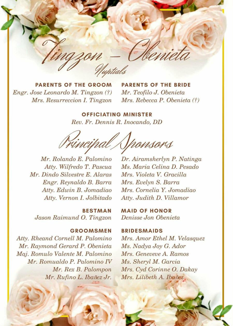 Together with our beloved Principal Sponsors, we gratefully invite you to witness DJ and Edson's sacred union, blessed by love and guided by wisdom.